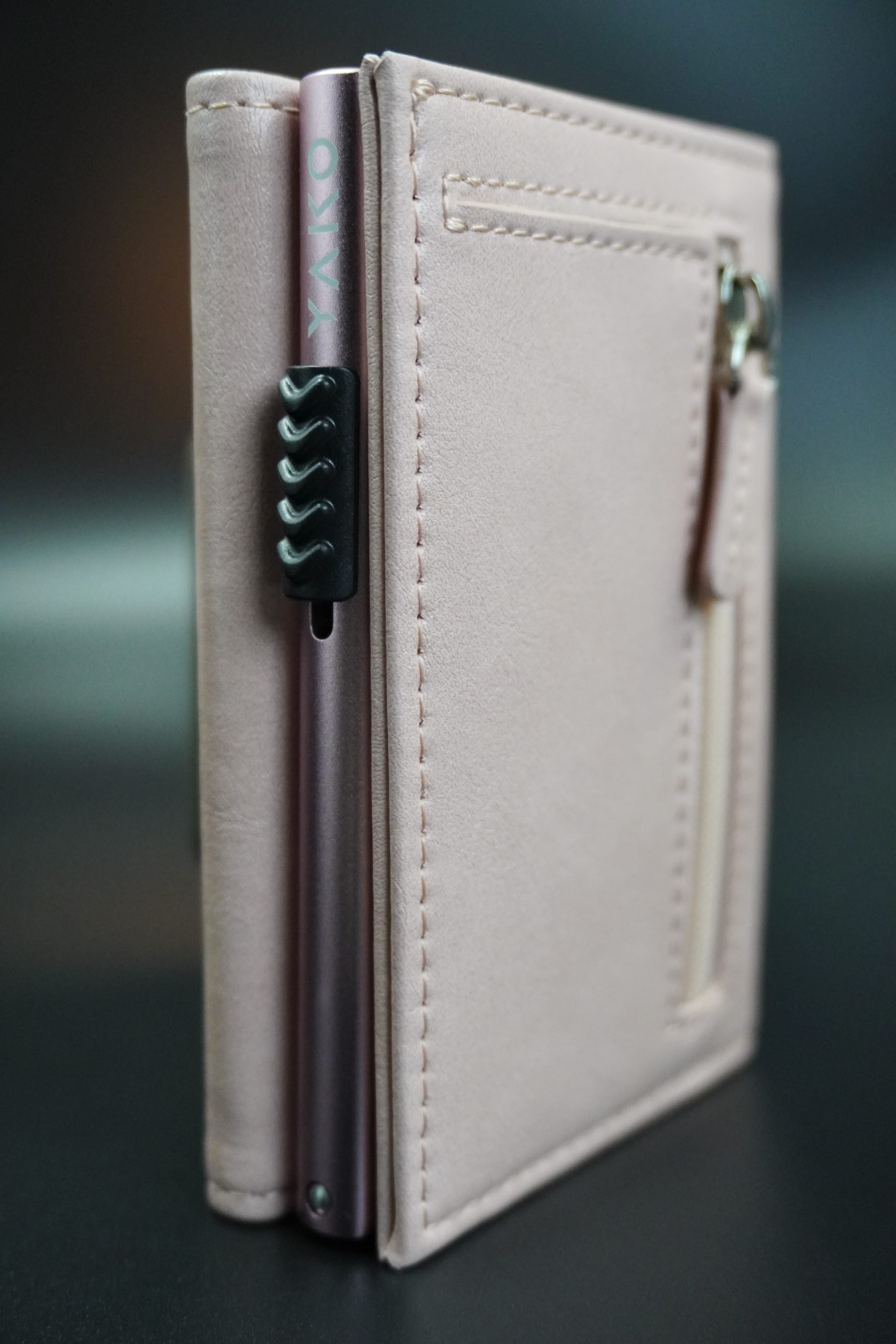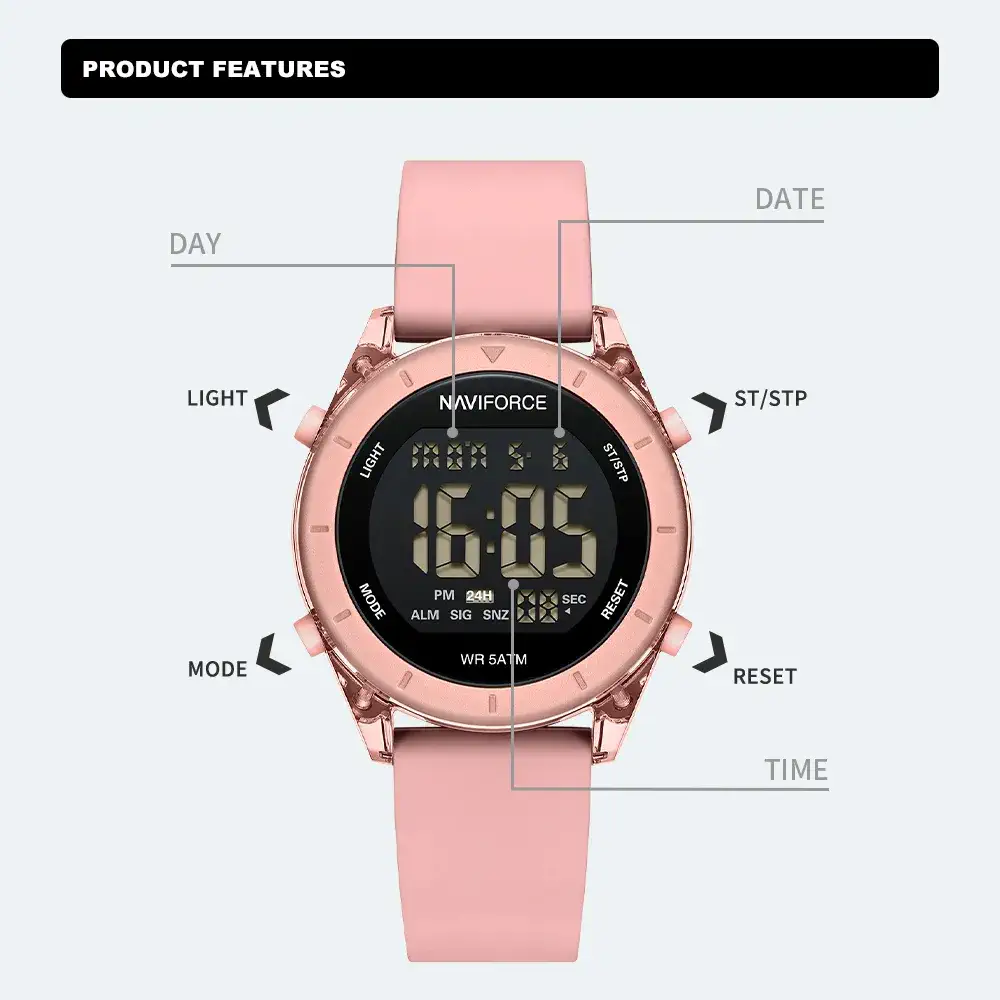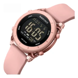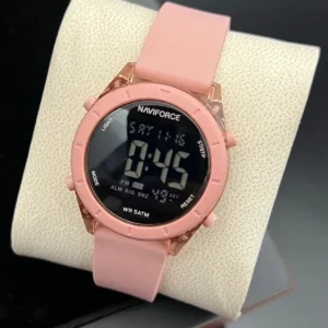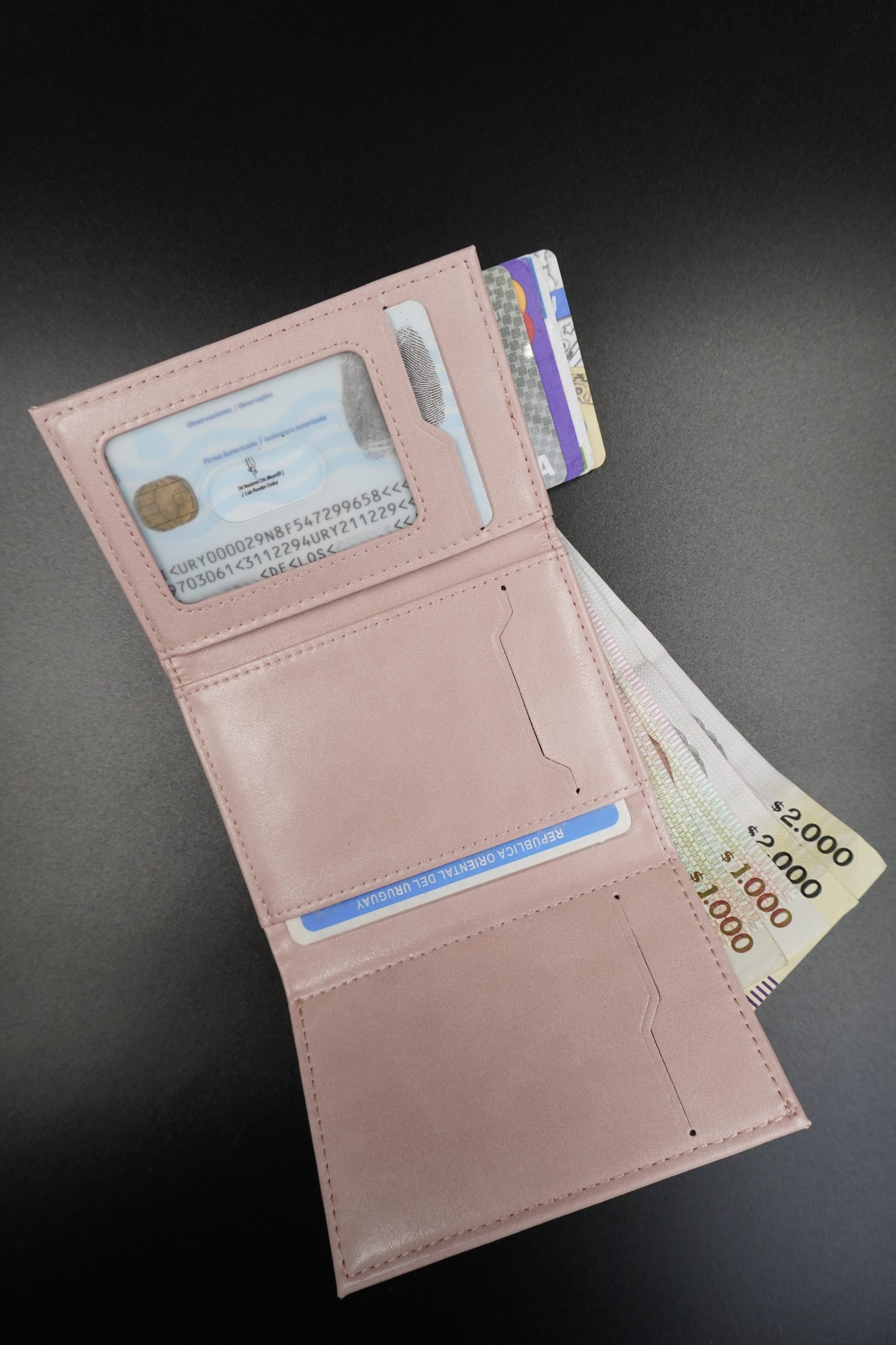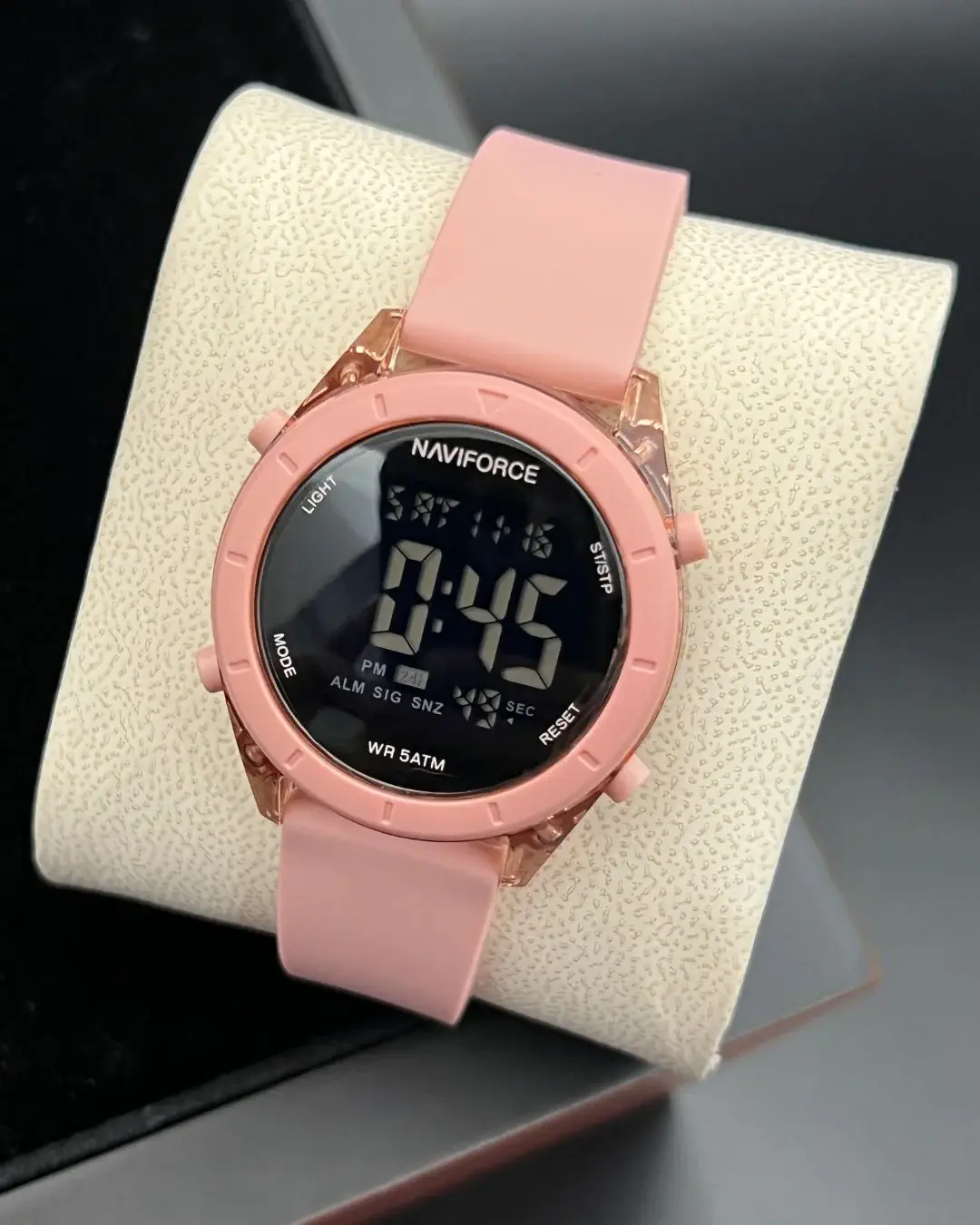 Reloj digital rosado + tarjetero premium con tecnología RFID anticlonación.