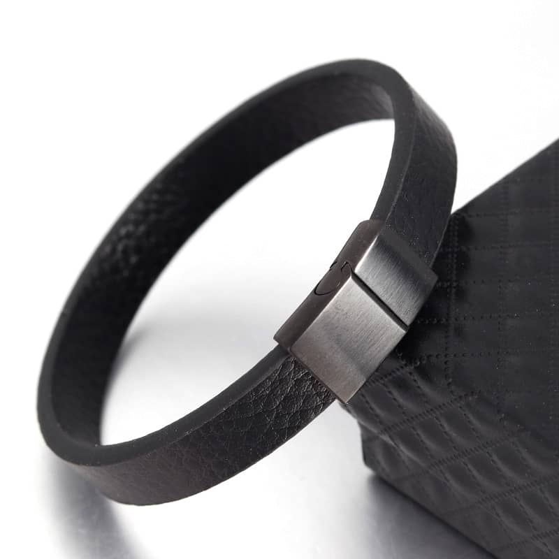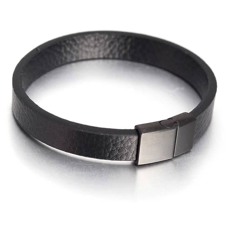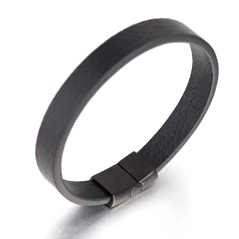 Pulsera de cuero negra clásica