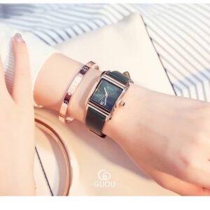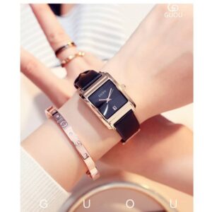 Reloj femenino premium en color negro, con diseño elegante, líneas definidas y malla de cuero que realza cualquier look con sofisticación.