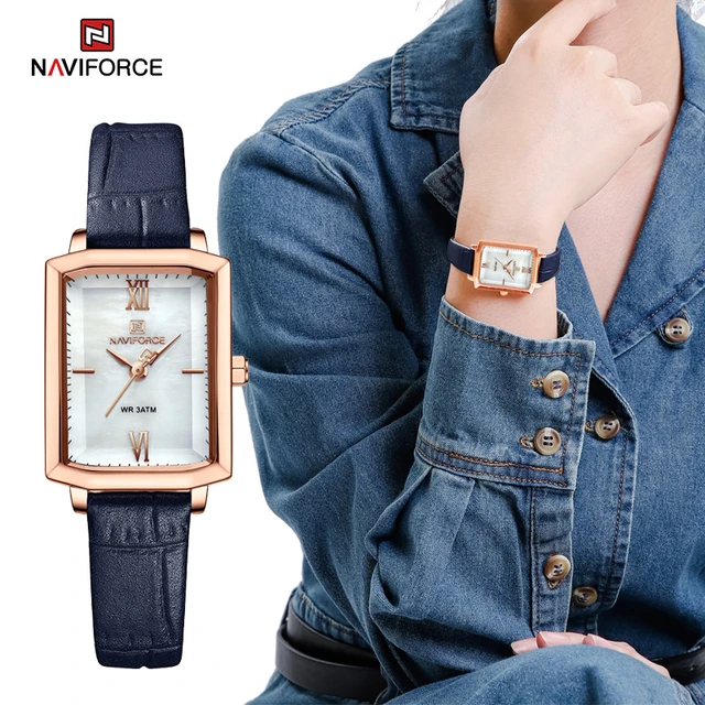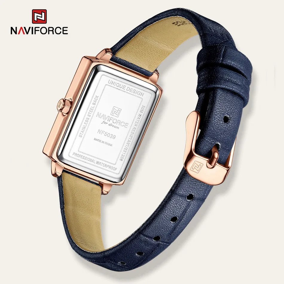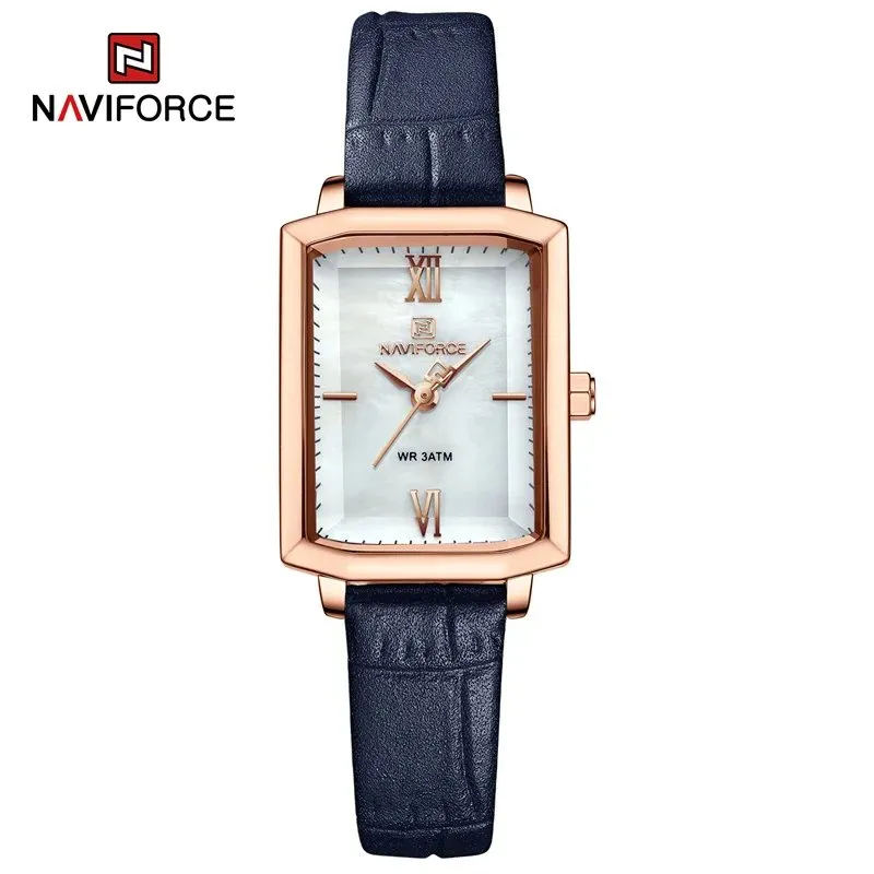Diseñado para las mujeres modernas que aprecian el estilo y la sofisticación, este cautivador reloj presenta una malla de cuero color azul oscuro, que complementa perfectamente la esfera blanca con detalles en color dorado. Con su combinación de colores sofisticados y llamativos, este reloj se convertirá en el accesorio imprescindible para completar tu outfit. No solo te brindará un toque de distinción en cada ocasión, sino que también te permitirá llevar el tiempo contigo de una manera elegante y única. ¡No esperes más para añadir este toque de glamour a tus muñecas y adquiere hoy mismo nuestro reloj femenino Naviforce!