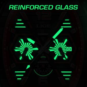 Este reloj de pulsera LIGE para hombre combina elegancia y deportividad en un solo accesorio. Equipado con funciones de cronógrafo y visualización de fecha, este reloj no solo es estiloso sino también práctico. La malla de silicona garantiza comodidad y durabilidad, haciéndolo ideal para el uso diario y actividades deportivas. Resistente al agua y construido con materiales de alta calidad, este reloj LIGE es una adición perfecta para los amantes de los relojes.